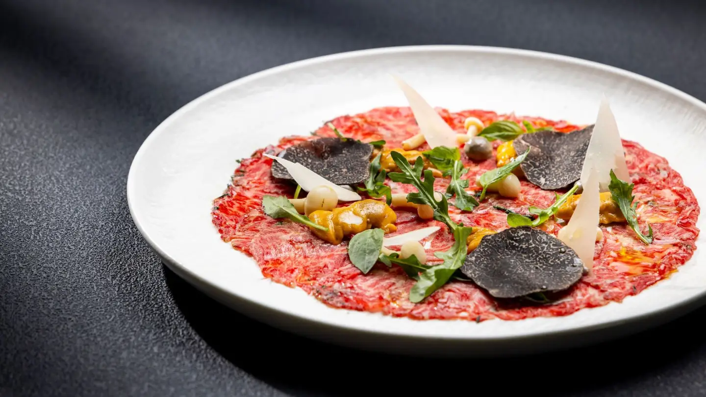 M9 beef carpaccio, sea urchin, truffle mayonnaise, winter truffle