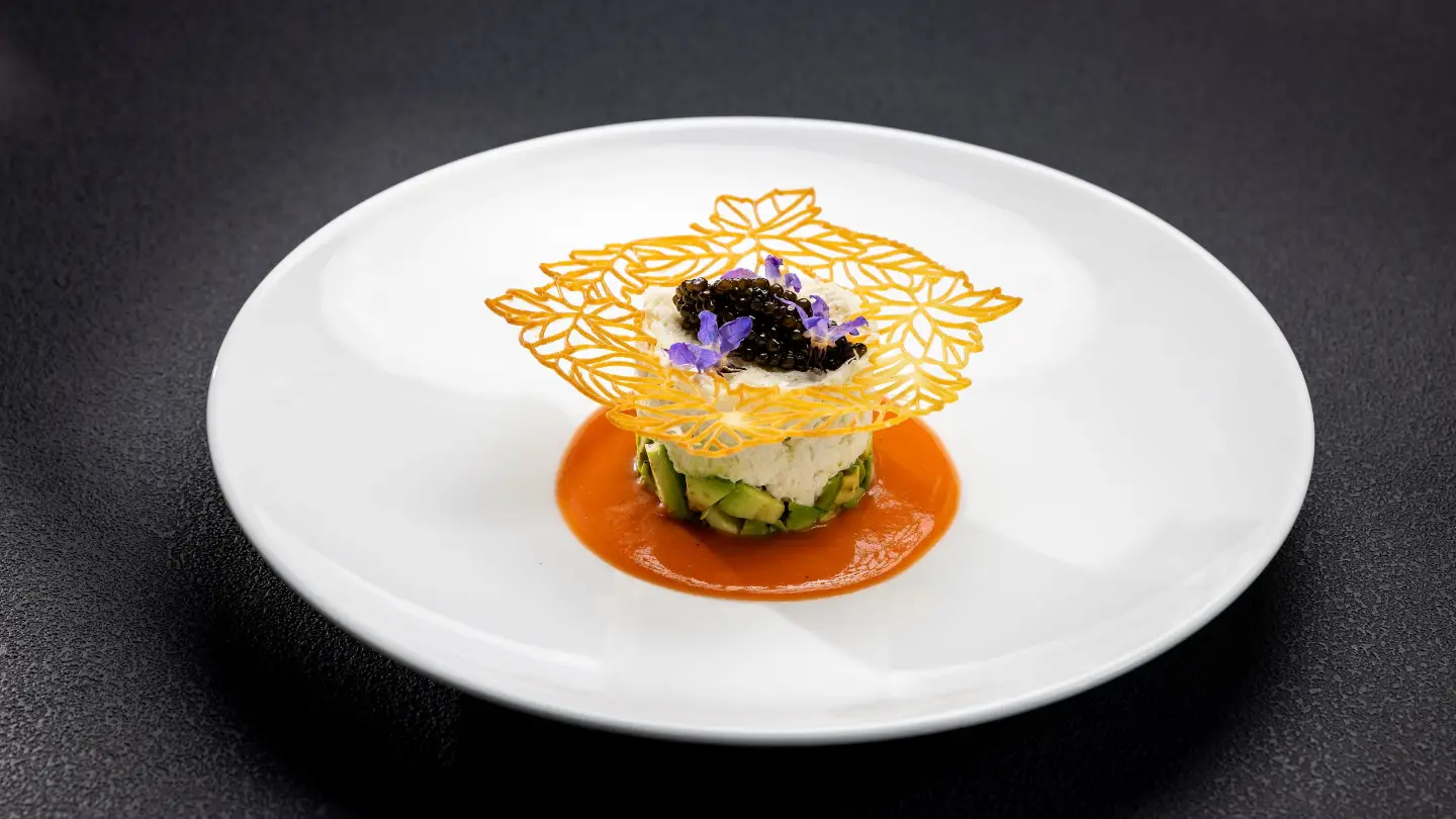 Crab and avocado salad with gazpacho soup